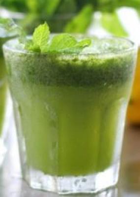 Eine tolle Variante: Man gibt je nach Geschmack ein Blatt (oder auch mehr) frische Minze mit in den Mixer. Wenn alles gut gemixt ist, gießt man das Ganze durch ein feines Sieb - und Prösterchen