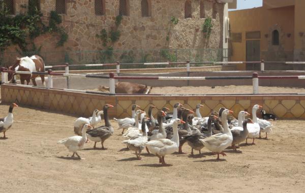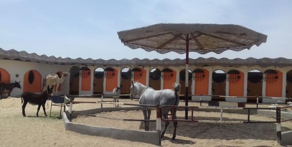 • In ägyptischen Verleihställen ist es nicht immer selbstverständlich, dass die Pferde in geräumigen Boxen gehalten werden. In dem hufeisenförmigen angelegten Stall gibt es Ventilatoren und typisch arabische Kuppelnbauten gegen die sommerliche Hitze. Die Stuten haben täglichen Gruppenauslauf im großen Sandpaddock, die Hengste laufen in zwei Roundpens oder auf dem Rasenplatz vor der netten arabischen Cafeteria.