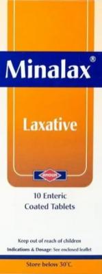 Minalax - wer Abführprobleme hat, kann dieses Medikamt mit dem Wirkstoff: Bisacodyl kurzzeitig verwenden. Es regt die Darmtätigkeit an und verhindert, dass dem Stuhl zuviel Wasser entzogen wird. 10 Tabletten = 18 LE (Stand 05.2026)