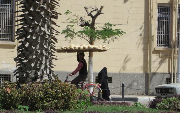 Viele Ägypter leiden unter den gestiegenen Preisen für Lebensmittel. Die Landeswährung musste gegenüber dem Dollar um 13 Prozent abgewertet werden. Ramadan ist die beste Zeit des Jahres für Said el-Essawi. Im Fastenmonat der Muslime deckt Allah den Tisch, el-Essawi kann besser essen als den Rest des Jahres. Mit neun anderen Männern sitzt der 65-Jährige in eine graue Galabeya gekleidet, Schulter an Schulter um eine Tafel, aus einer weißen und einer braunen Holzplatte zusammengestückelt. Darauf stehen in Styroporschalen Foul, eine braune Paste aus gekochten Fava-Bohnen, Gurken und Tomaten, scharf eingelegtes Gemüse, Fladenbrot und Rucola -Blätter. Für jeden gibt es ein Plastiktöpfchen mit Makkaroni, Kartoffeln, einem gegrillten Hühnerschenkel, dazu Wassermelonen-Stücke und Qatayef, mit Nüssen gefüllte, goldgelb frittierte Teigtaschen, die in Zuckersirup getränkt werden, ein typisches Ramadan-Dessert. Für viele Ägypter, von denen ein Viertel unter der Armutsgrenze von 1,50 Euro pro Tag lebt und viele andere nur knapp darüber, ist das ein Festmahl, das sie sich sonst nicht leisten können. Jeden Abend treffen sie sich in diesen 30 Tagen in einer der engen Gassen zwischen einst herrschaftlichen Häusern im Kairoer Innenstadt-Viertel al-Asbakeya. Am Tag verkaufen Händler hier Autoersatzteile, am Nachmittag stellen ihre Mitarbeiter Tische und Stühle auf für das Iftar-Bankett, das traditionelle Fastenbrechen nach Sonnenuntergang. 1200 Menschen bewirten die Brüder Mohammed und Mahmoud el-Gharib hier, wohlhabende Geschäftsleute. Jeden Abend im Ramadan. 1700 weitere holen sich Essen ab und nehmen es mit nach Hause, sagt Mahmoud el-Gharib. Den Armen zu geben ist Pflicht für die Muslime, im Ramadan noch mehr als sonst.