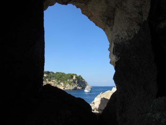 Der Ort des eingelösten Gelübdes heißt „Ses coves de Mare de Déu“ (Die Höhlen der Gottesmutter). Er liegt rund hundert Meter vom kleinen Strand Portals Vells entfernt und verleiht ihm seinen Namen (Portals – Tore). Eigentlich ist es nur eine einzige, tiefe und ausladende Höhle. Doch weil Arbeiter im Mittelalter drei riesige, torähnliche Löcher in den Fels geschlagen haben, um ihn nach und nach auszuhöhlen, spricht man von diesen Höhlen an der Küste im Plural. Der Sandstein wurde zum Bau der Kathedrale und von Stadtpalästen mallorquinischer Handelsfamilien nach Palma transportiert. Übrig blieb ein dunkles Loch, das den Seeleuten als Unterschlupf diente, so will es die Legende. Heute gruseln sich hier vor allen Dingen die Kinder. Nicht nur im stockdusteren hinteren Teil der Höhle. Auch beim Anblick des von Seemannshand geritzten Altars neben dem ersten Eingang wird einem mulmig. Die für heutige Gewohnheiten unstimmige Kombination von religiösen, weltlichen und alchimistisch anmutenden Zeichen wirkt befremdend: Ein INRI neben einer Sonne, schlangenähnliche Formen, Blüten, Ornamente, die an offene Drachenmäuler erinnern … Zum Glück gibt es die Legende der Genueser Seeleute. Denn steht man vor dem Halbrelief, denkt man eher an schwarze Magie und exotische Riten als an Katholiken aus Italien. ... InfoQuelle und weiterlesen