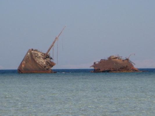 Foto: C. v.d.-Vorst-Schick - Wrack der MS Maria Schöder die vor 60 Jahren - im April 1956 im Golf von Aqaba auf ein Riff lief.