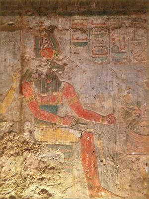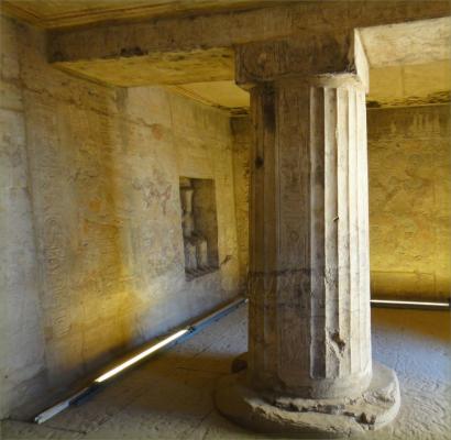 In der kleinen Nische (Foto unten) sitzt Ramses zwischen den Gottheiten Isis und Horus.