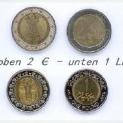 Münzen waren im touristischen Alltag lange Zeit nicht im Umlauf. Die Münzen von "früher" werden heute überwiegend als Souvenirs in „Sammlermäppchen“ angeboten. Im Mai 2005 versuchte man 2 neue Münzen in den Umlauf zu bringen, zunächst mit mäßigem Erfolg. Anfangs war`s gar nicht so einfach für mich - je ein Exemplar von einer 1 LE und einem 50 Piasterstück aufzutreiben. Im April 09 wurden sie an sehr vielen Supermarktkassen als Wechselgeld genutzt und 2014 sind sie aus dem normalen Alltag nicht mehr wegzudenken. Hin und wieder kann man lesen, dass die Münzen aus kostengründen wieder aus dem Verkehr gezogen werden sollen